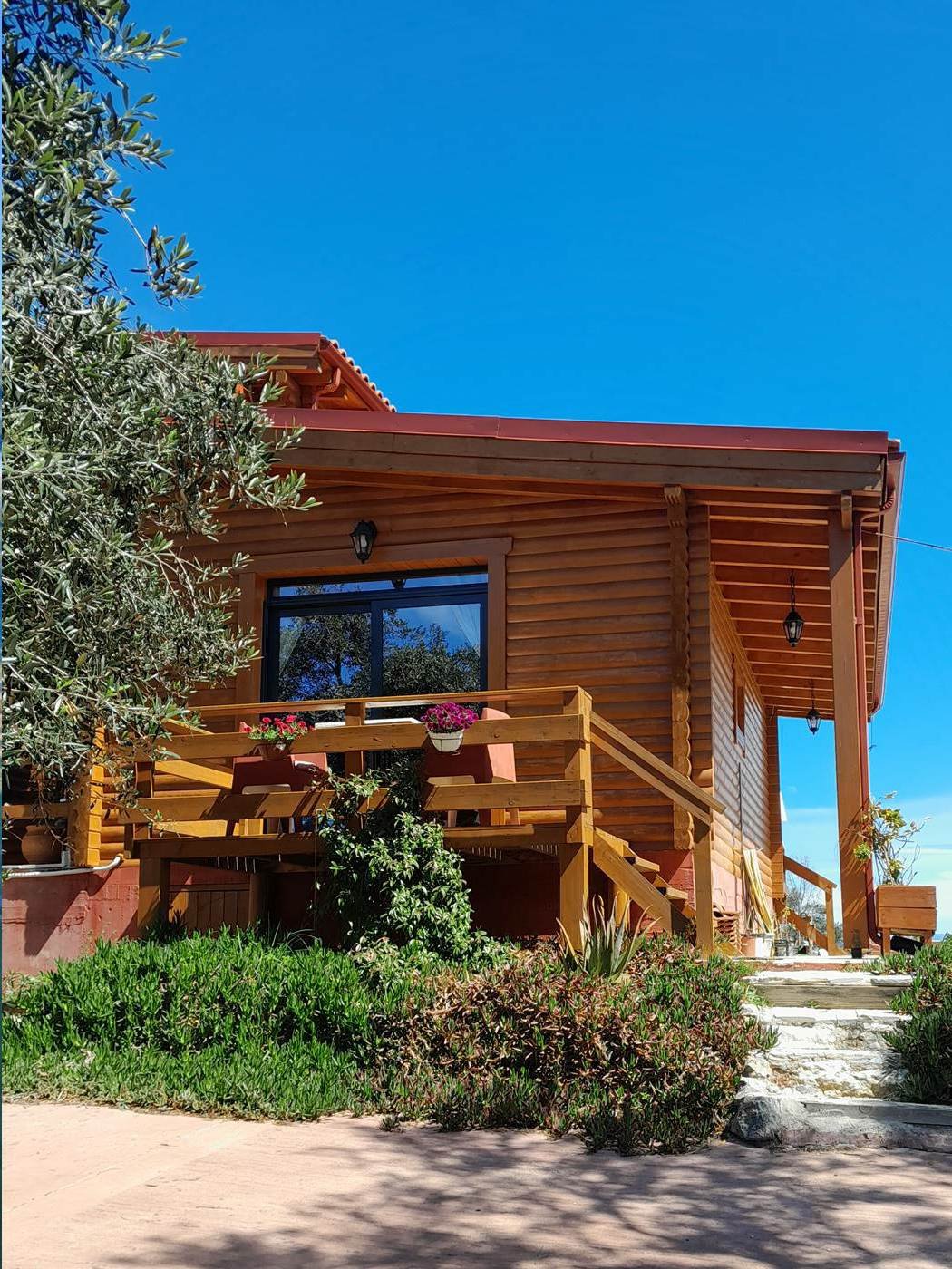 Stay in a one-of-a-kind wooden chalet built around a living olive tree. This private, first-floor retreat sleeps up to 4 guests and features a double bed, mezzanine sleeping area, kitchenette, and shower room. Enjoy a private terrace plus an extra shaded seating area below, with stunning views of Mount Chlomos, the Ionian Sea, and the pool. Detached, peaceful, and perfect for a unique getaway.